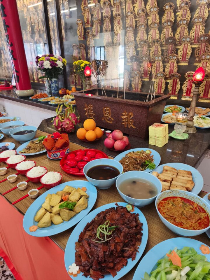 本堂虔备丰盛素斋、珍馐果品、酒茶、金帛等在报恩楼举行冬祭,以报答祖先之德。