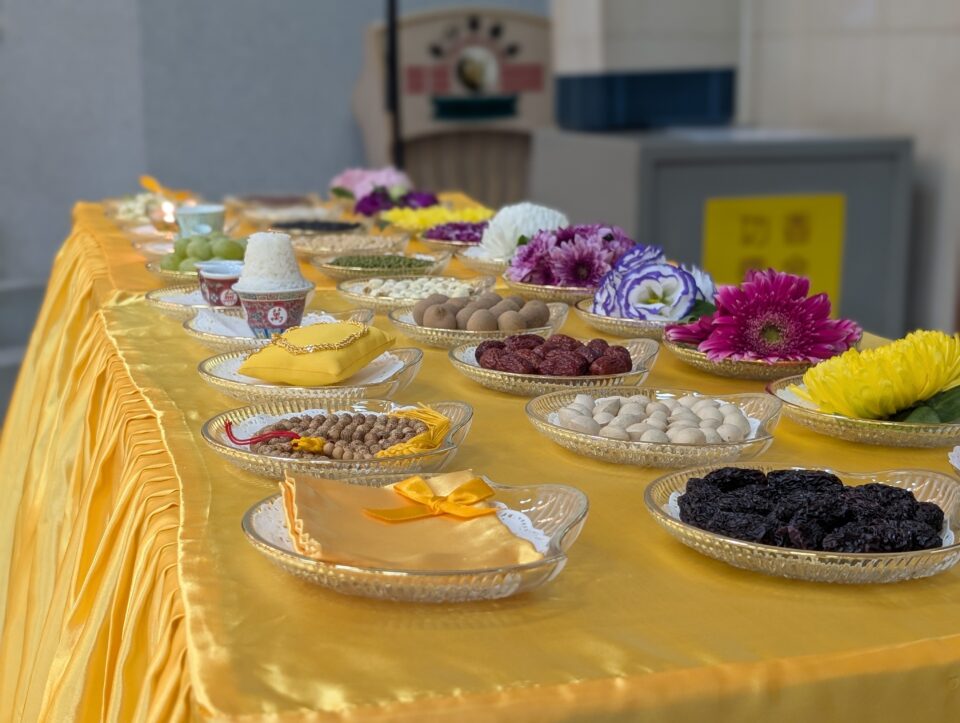 本堂于是日恭祝 宏仁普慧恩师大诞良辰,云集众门人及十方善信,登临大殿,叩诵祝诞经赞,敬献香、花、灯、水、果、茶、斋、宝、珠、衣行十献礼,以表寸心。并举行药师法会,祈求 恩师庇佑门下弟子及十方善信,福寿安康。